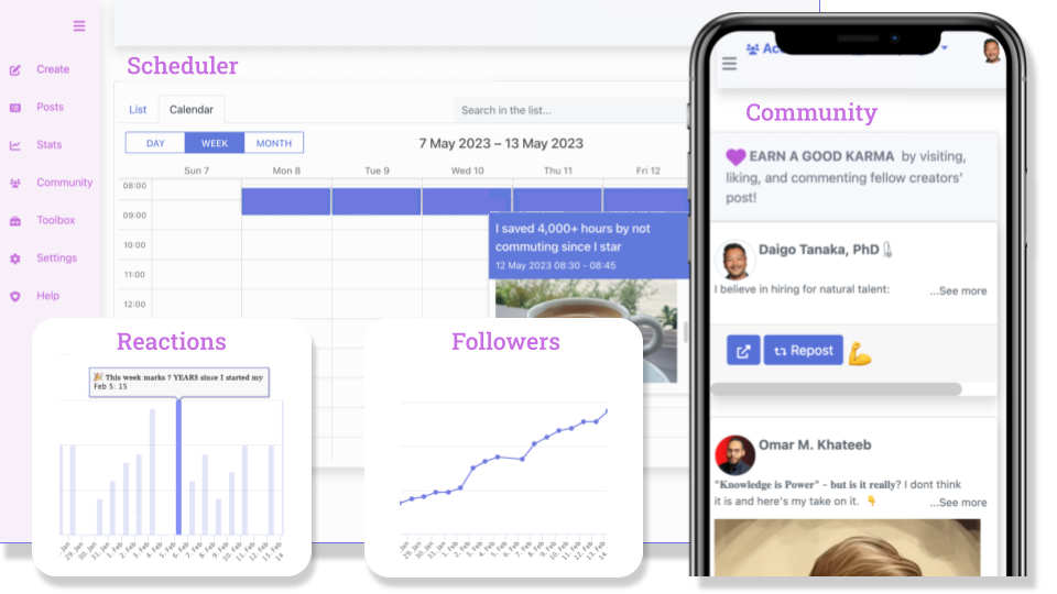 Try NowYou can schedule your posts and comments ahead of time with our simple to use scheduler. Engage with your audience everyday during your busy professional life.
